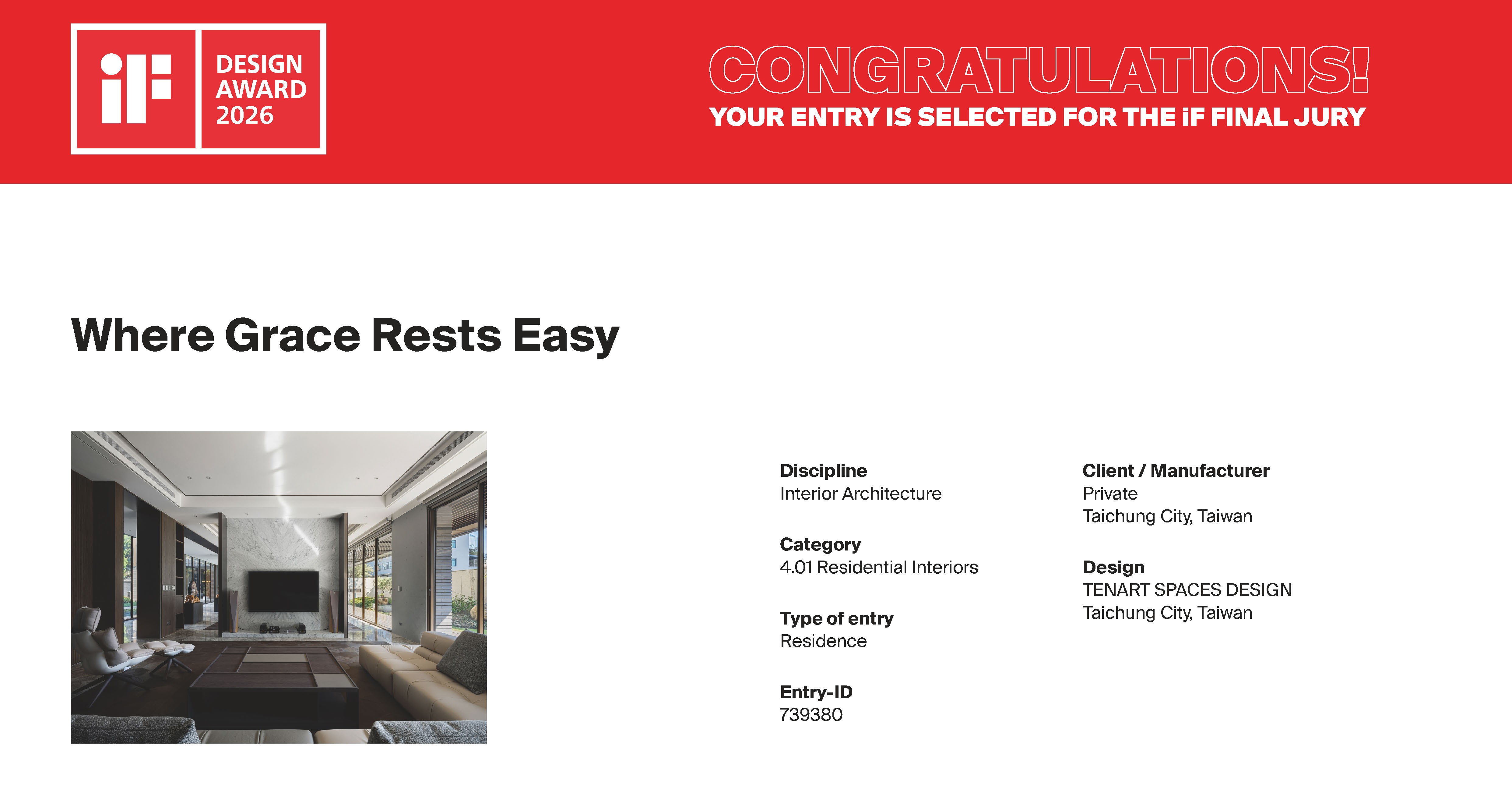 「龍富紫園」國際設計最高殿堂2026 德國 iF DESIGN AWARD 公佈初審結果案件初審通過榮獲Finalist